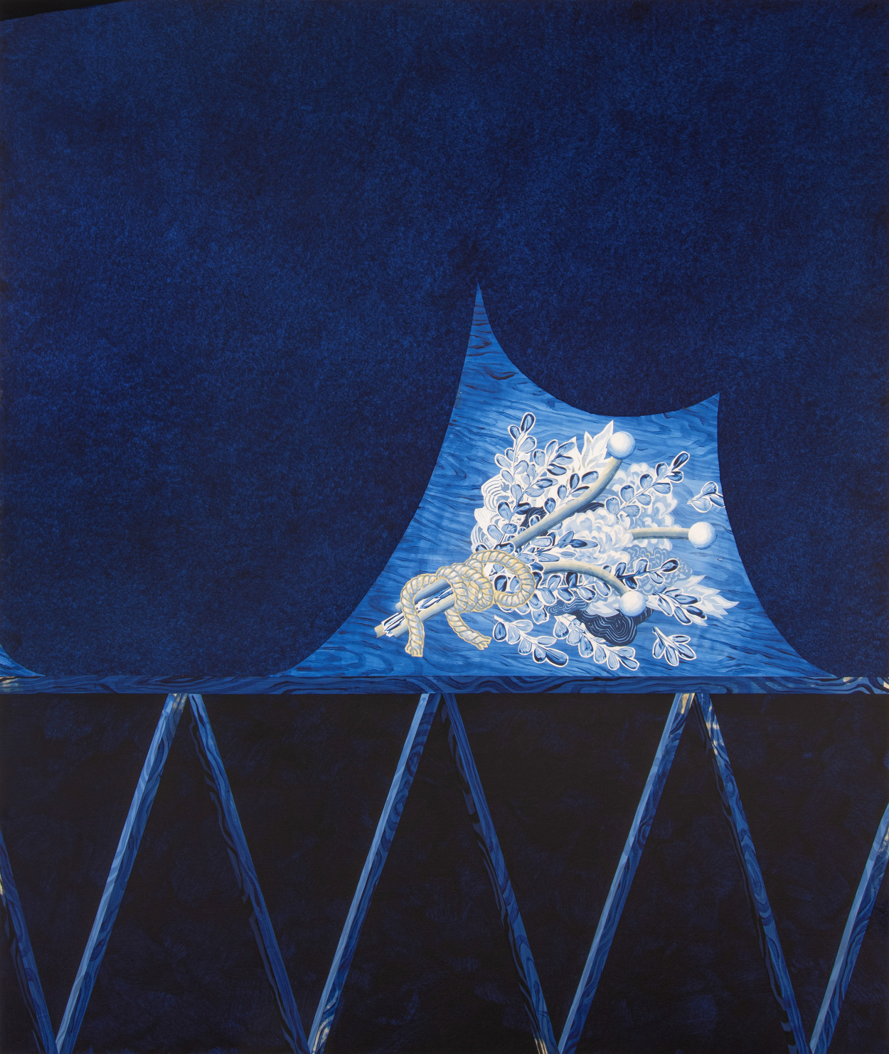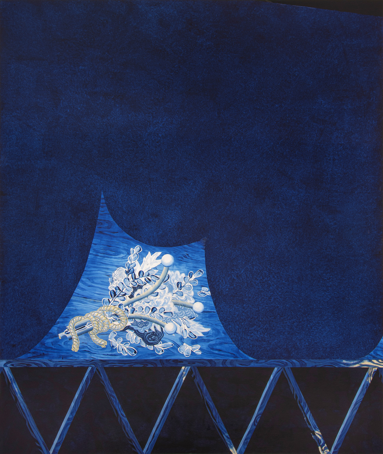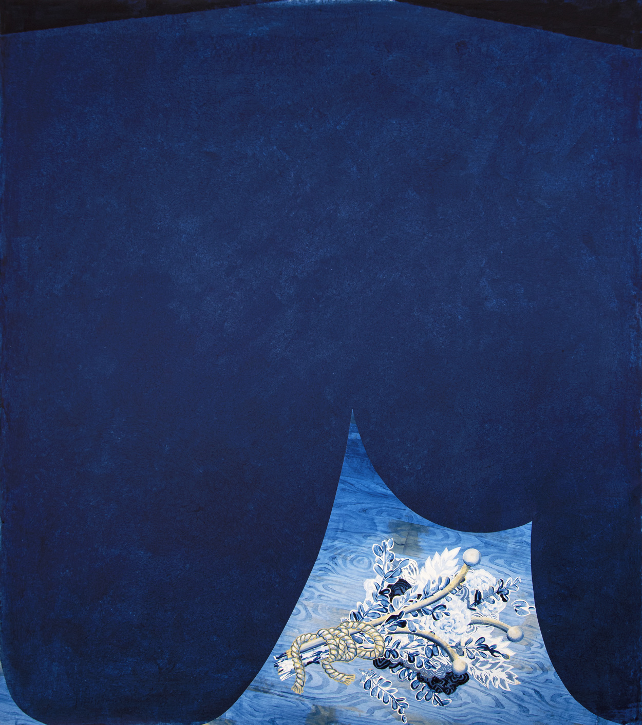 Curtain Call acrylic, okawara on panel 45"x39", 2023