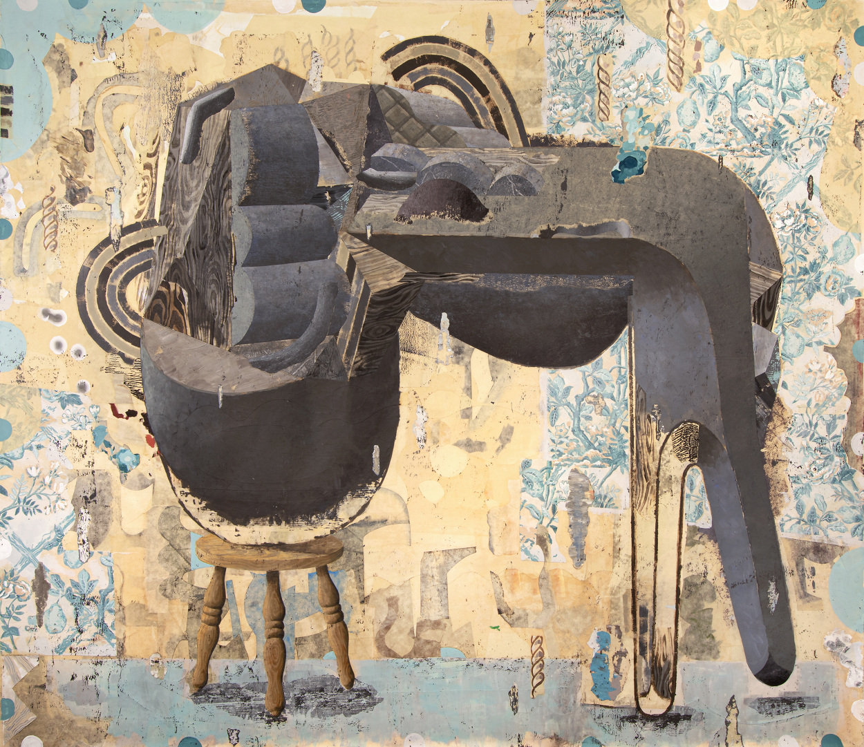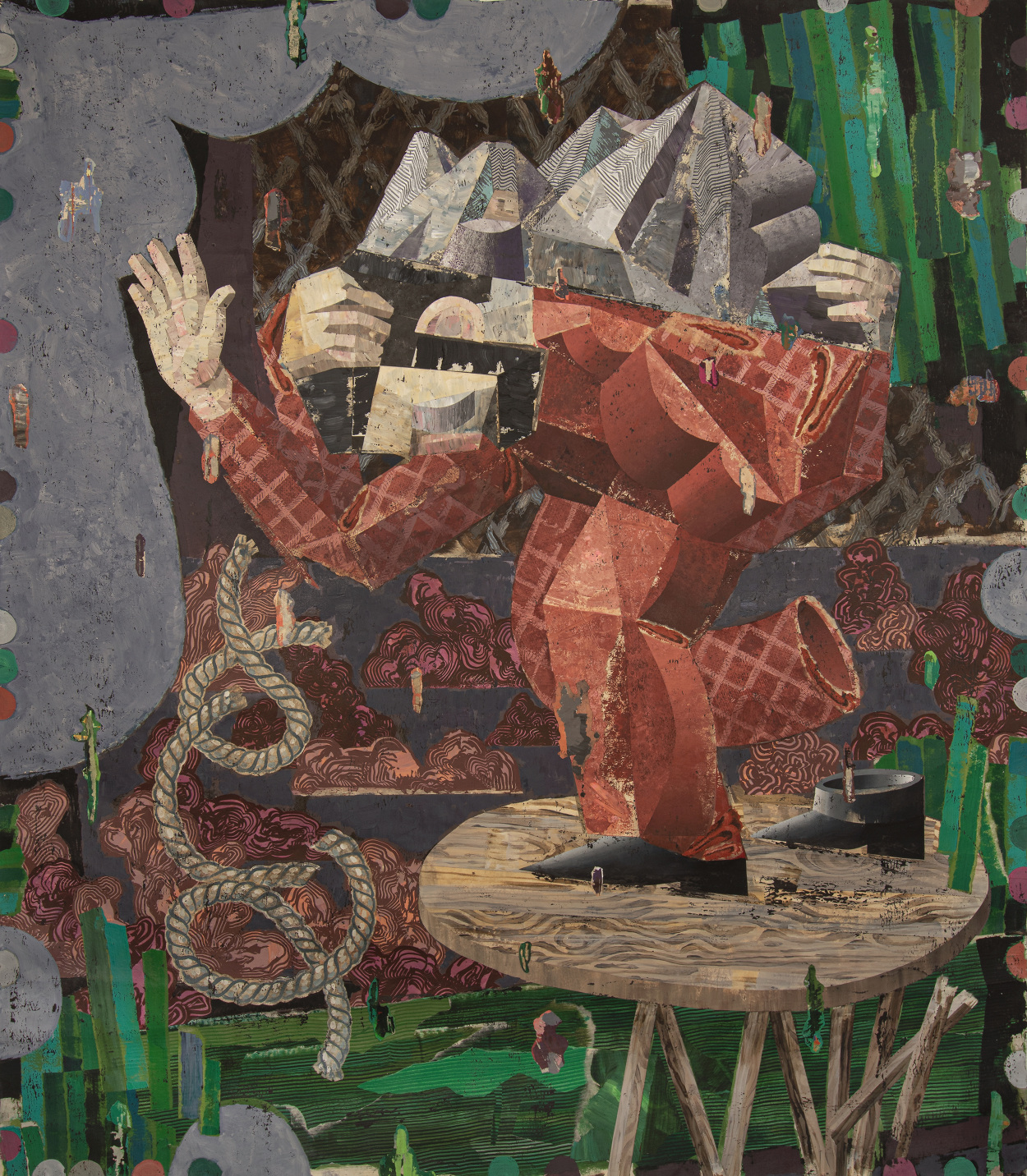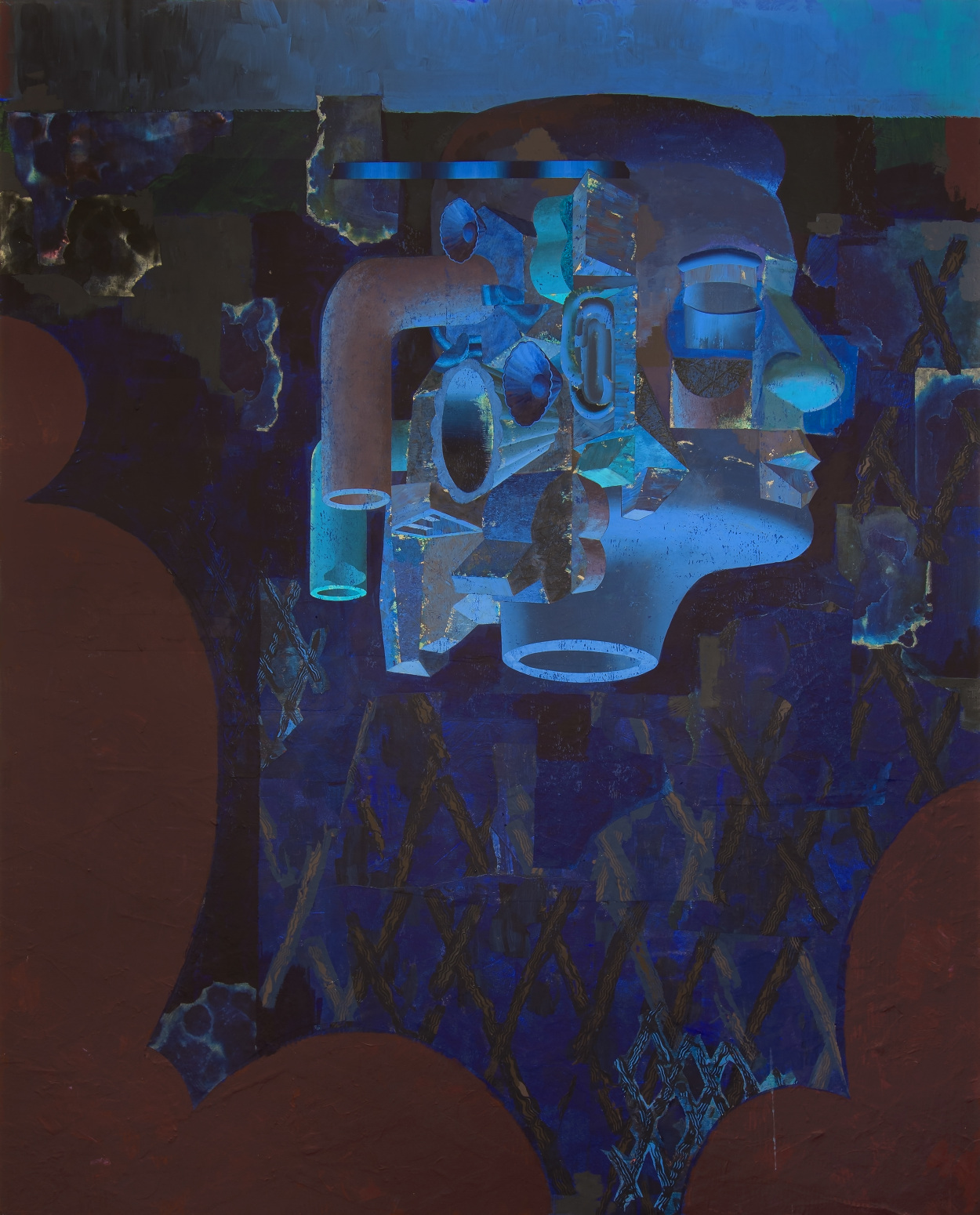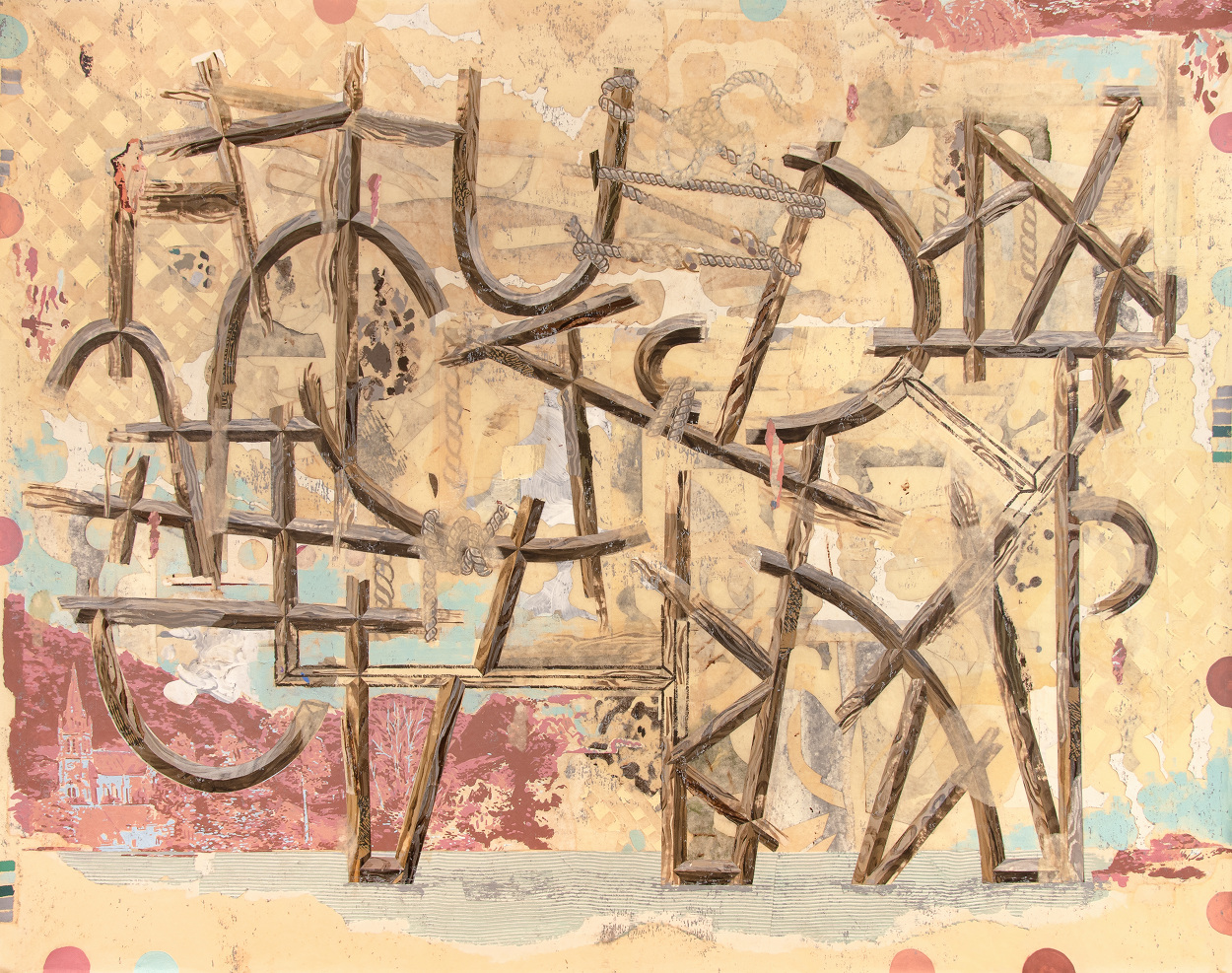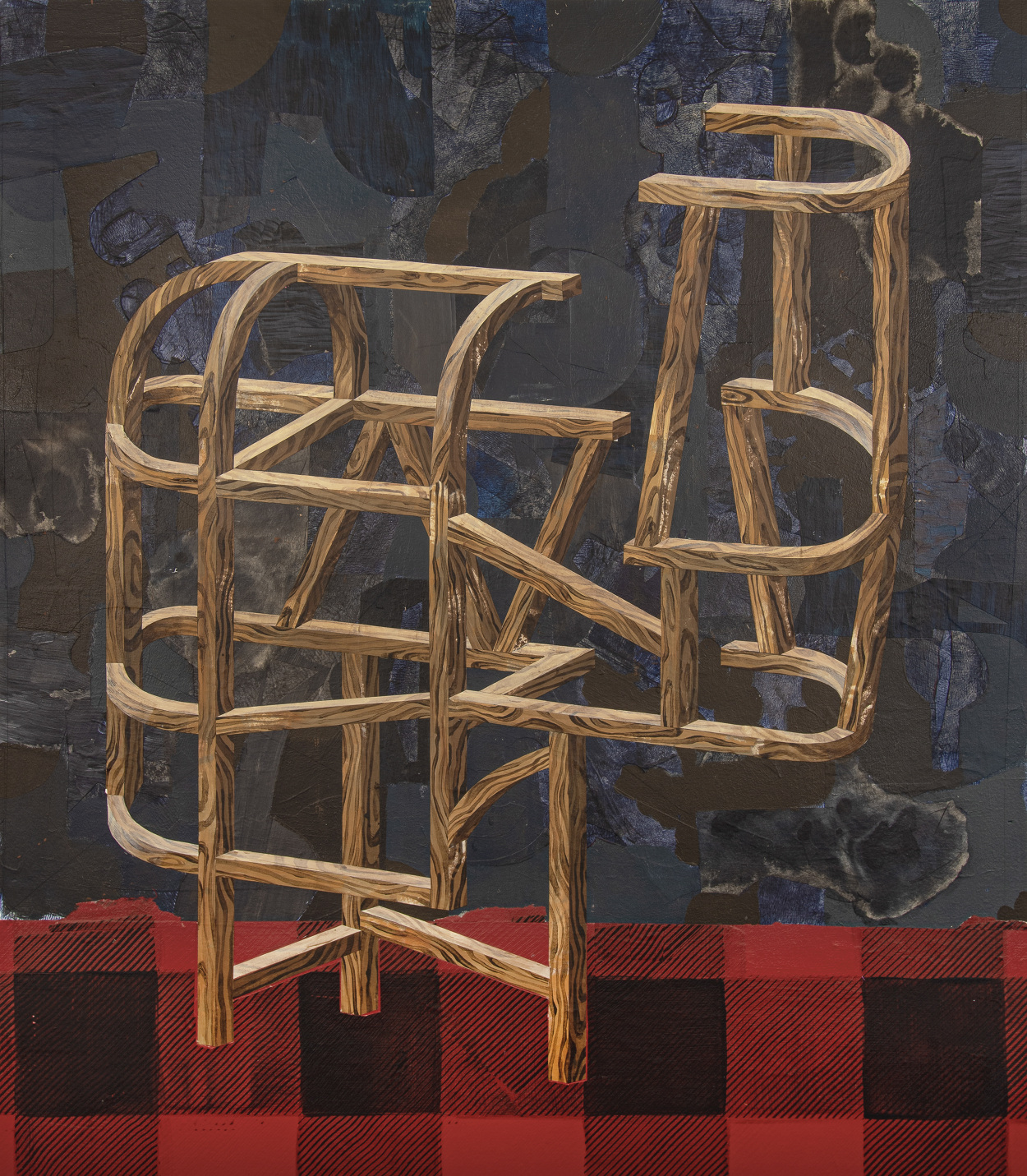 Fake it till you Break it (Device for the Projection of Dubious Optimism)n acrylic, okawara on panel 60"x48", 2023
