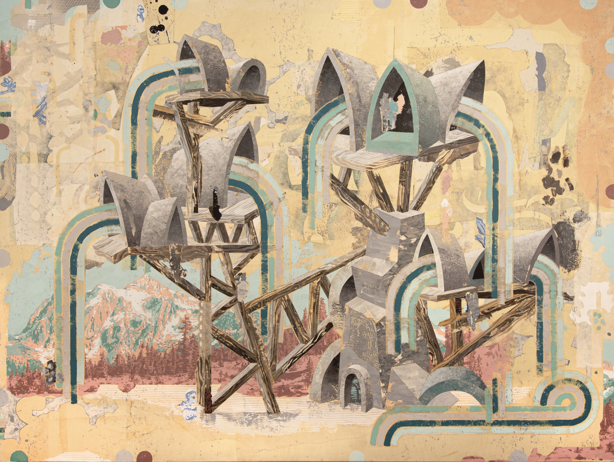 Traverse acrylic, okawara on panel 39"x45", 2023