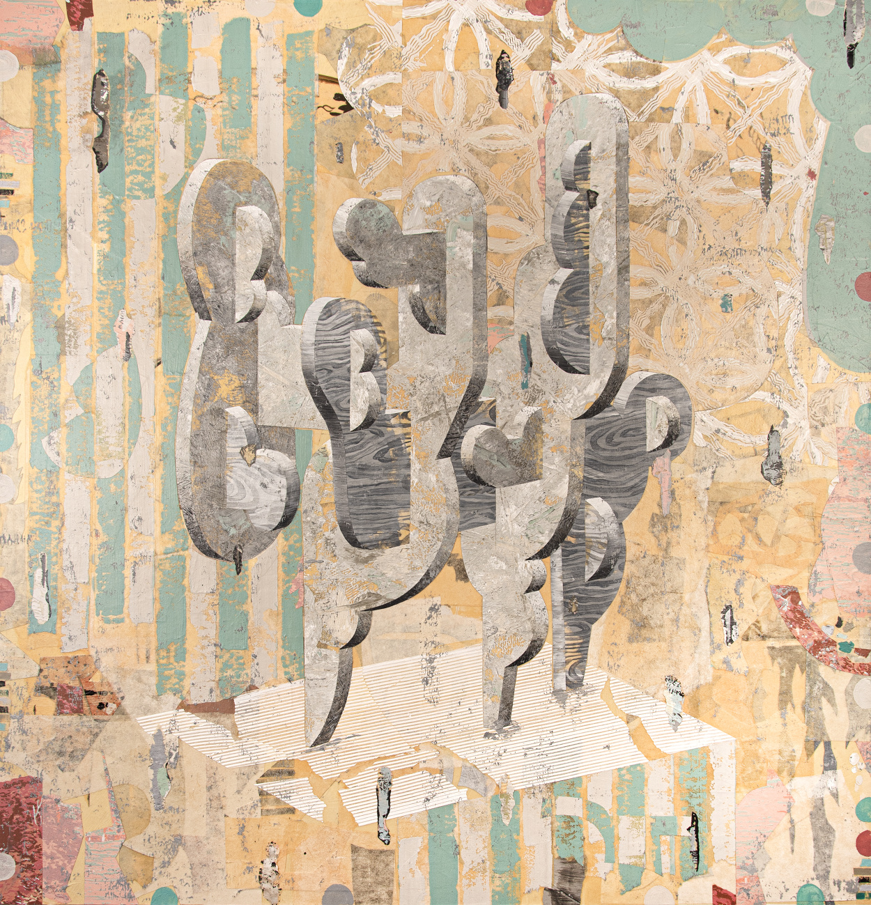 Taking Stock (Retrofit) acrylic, okawara on panel 60"x60", 2022-2023
