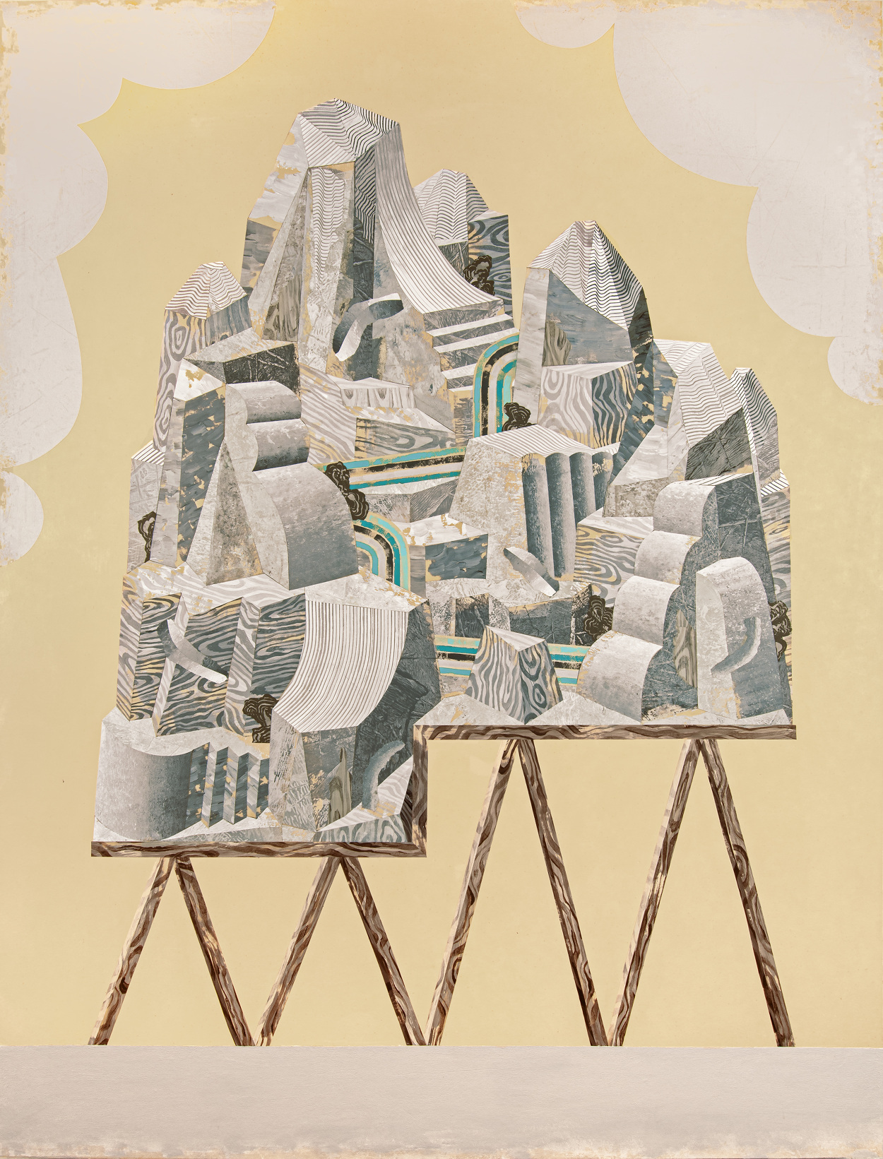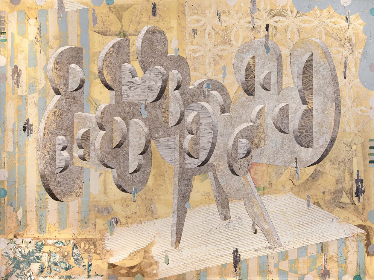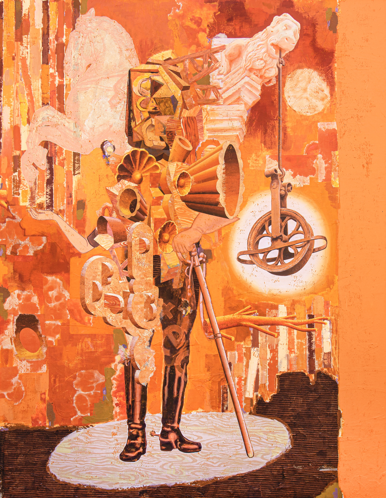 And the Oscar Goes To... acrylic, okawara on panel 38"x50", 2023