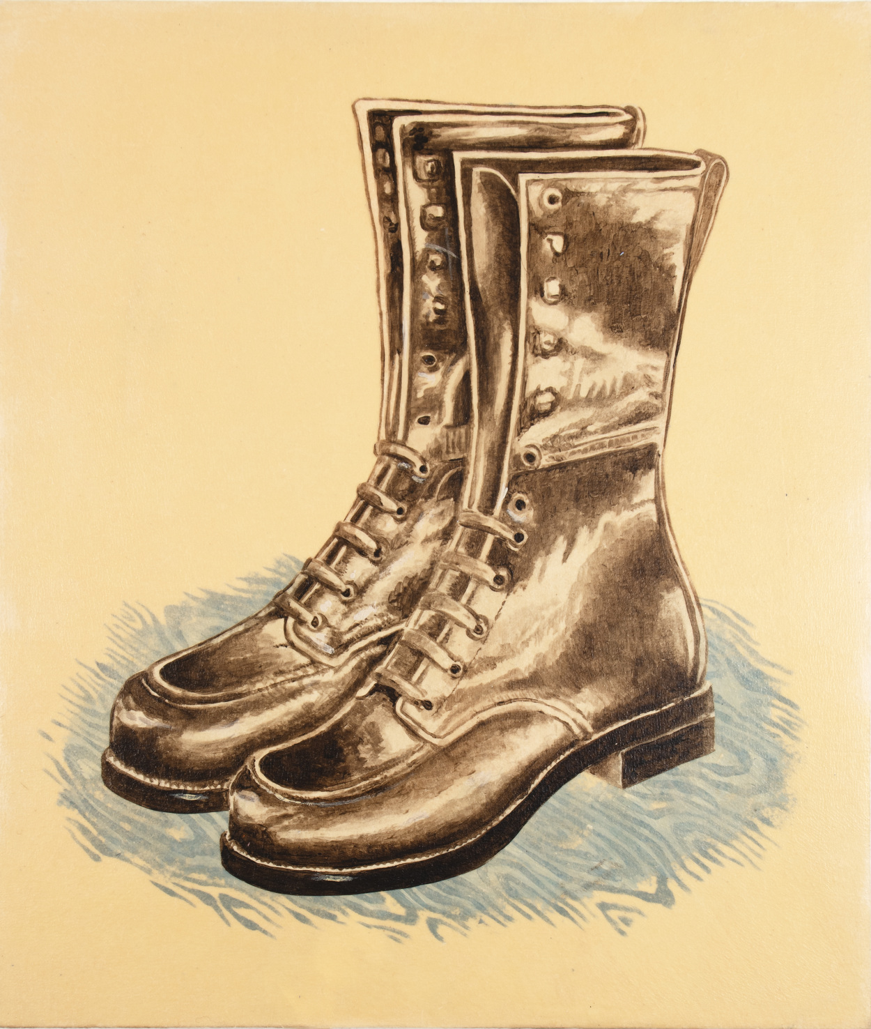The Evening News acrylic, okawara on panel 48"x36", 2025