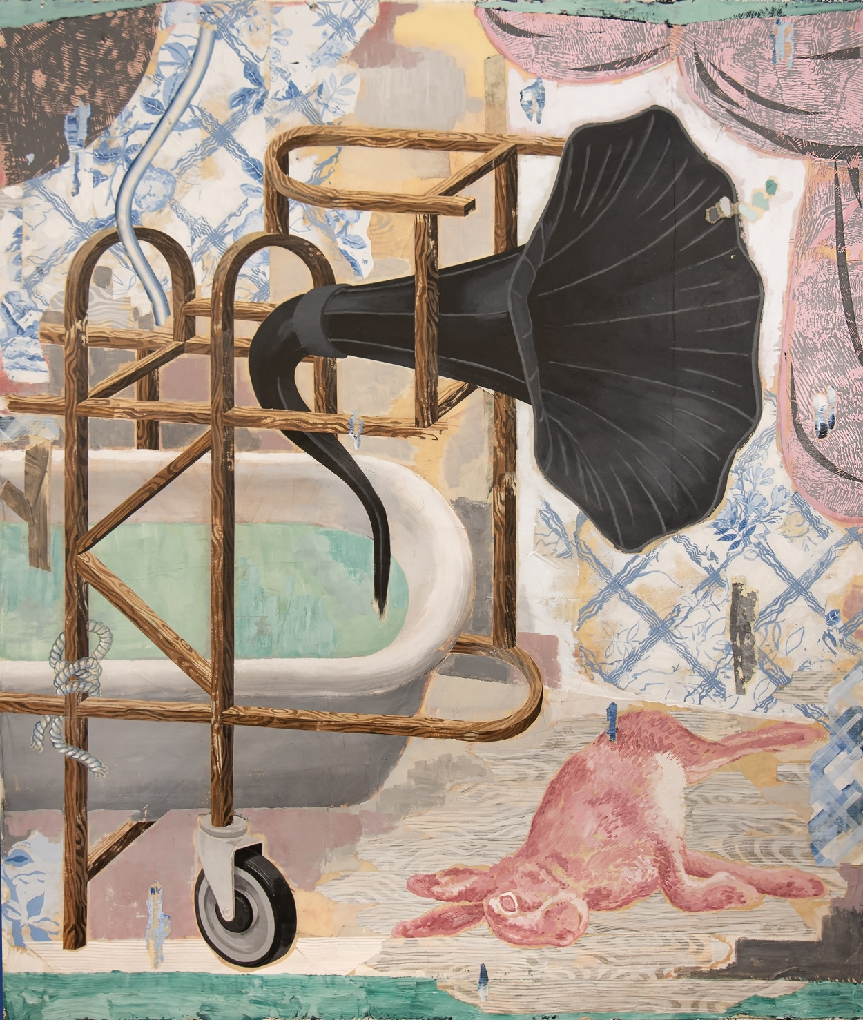 Device for the Obfuscation of Crippling Anxiety acrylic, ink, flashe, okawara on panel 64"x54", 2023