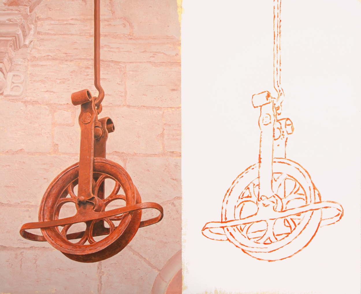 Stepladder acrylic, okawara on panel 40"x38", 2023
